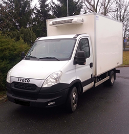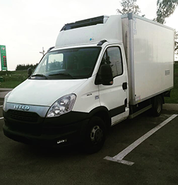 Для перевозок грузов у нас есть собственные четыре машины рефрижераторы грузоподъемностью до 2,5 тонн: 3 автомобиля Iveco (2005 г., 2012 г. и 2013 г.) и Рено (2007 г.).
